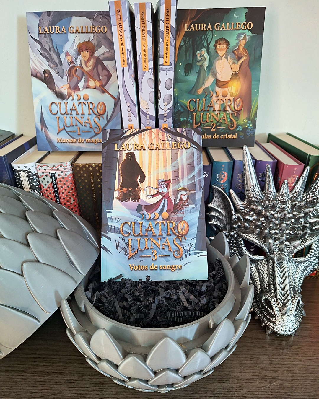 ¡Día de lanzamiento! Hoy llega a las librerías la tercera parte de la saga Cuatro Lunas, que tiene por título Votos de sangre. En esta ocasión, Milo y Nivalan viajan hasta las Estepas Boreales, una región fría y desolada que les deparará algunas sorpresas. ¿Estáis listos para continuar el camino junto a ellos y vivir una nueva aventura?